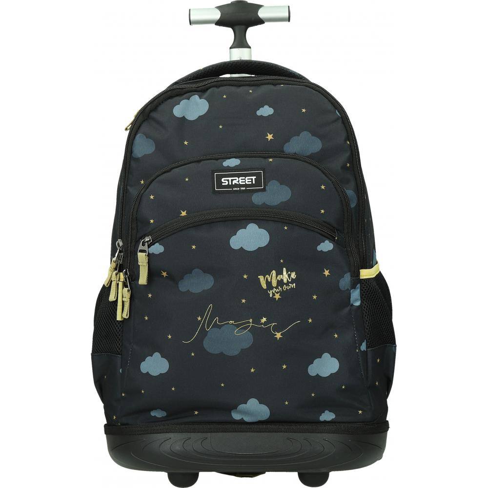 - Kakovosten ovalni nahrbtnik s kolesi in ročajem.#13#10- Trpežen in velik ročaj za enostavno prenašanje.#13#10- Dva stranska žepa.#13#10- Široke in čvrste naramnice.#13#10- Dimenzije: 34x22x47 cm.