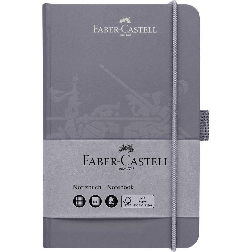 - Zvezek Faber-Castell A6 siv z elastiko.#13#10- Visoko kakovostni zvezek.#13#10- Velikost 90x140mm.#13#10- Listi 100g, FSC papir, mali karo.#13#10- 194 strani.#13#10- Reža in nalepka za enostavno arhiviranje.#13#10- Vključeno elastično držalo za svinčnike in kazalo.