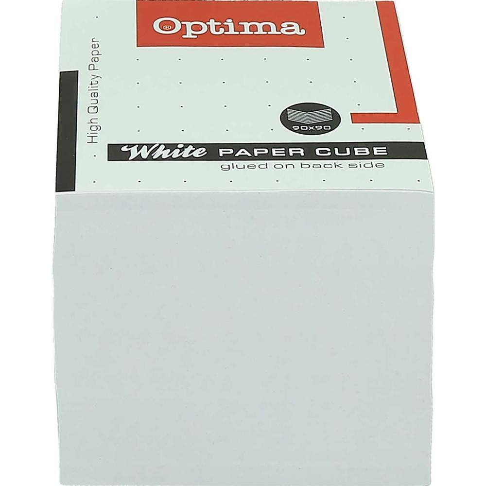 Kocka papirna memo, bel papir, lepljena na zadnji strani, brez stojala