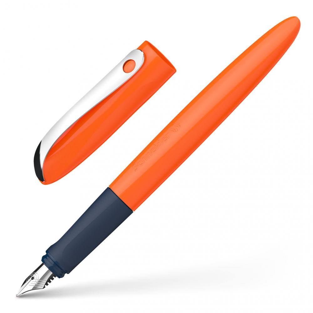 Nalivno pero Wavy v oranžni barvi.#13#10- Idealno nalivno pero za učenje pisanja.#13#10- Iridijeva konica, odporna na pritisk. #13#10- Ergonomska oblika in mehak oprijem#13#10- Za desničarje in levičarje.