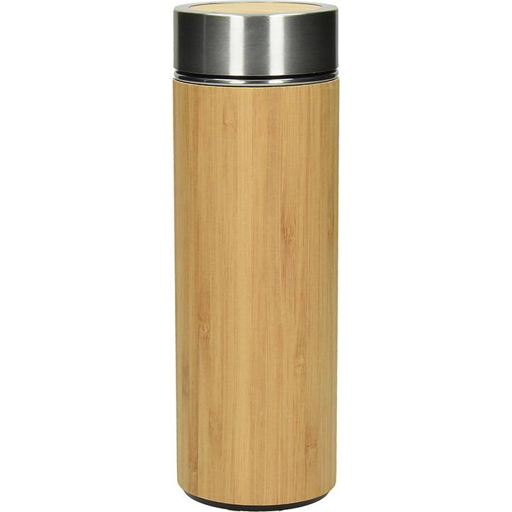 Iz nerjavečega jekla, dvojna obloga stene, z zamaškom proti iztekanju tekočin in prevleko iz bambusa.