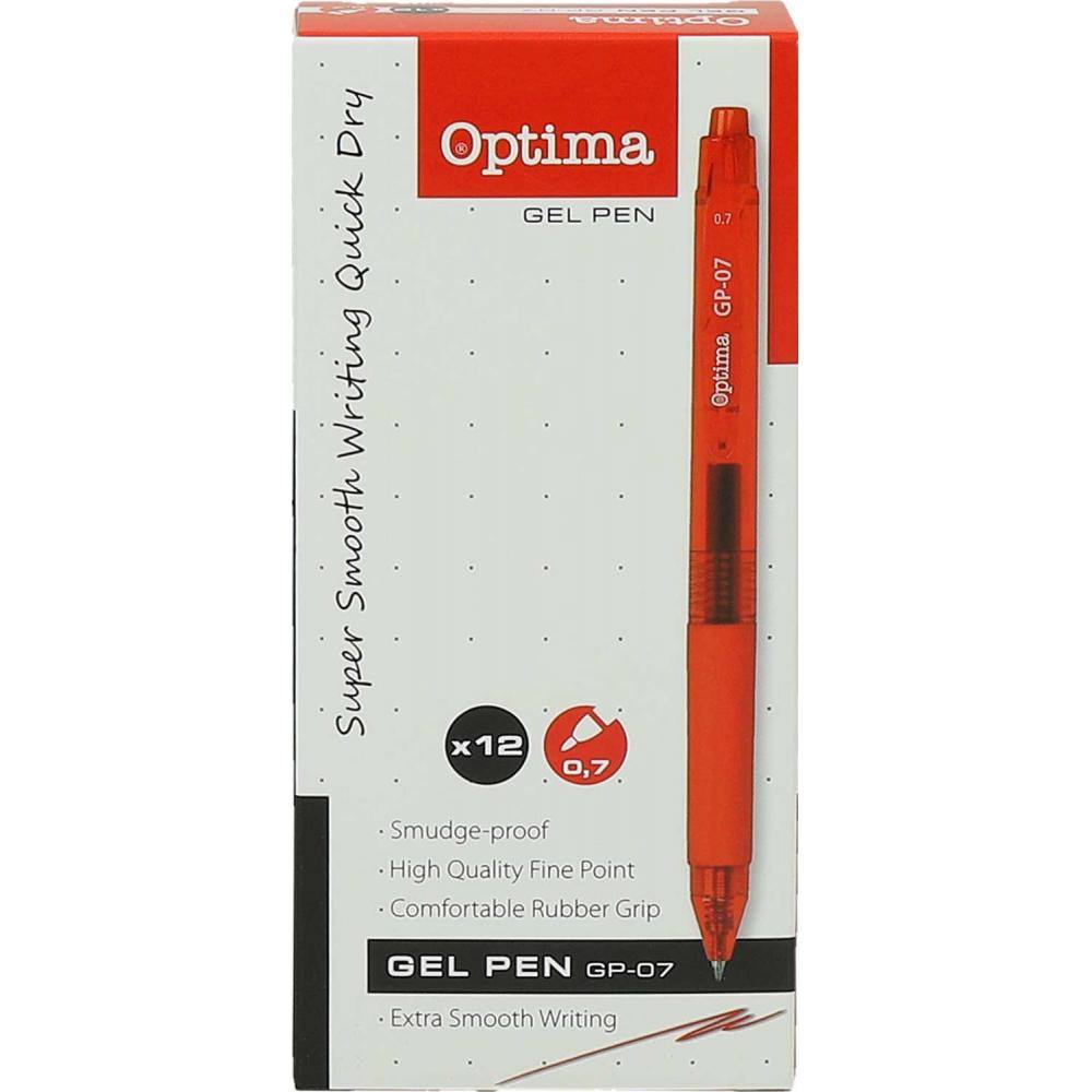 Gel pisalo Optima GP-07, rdeče, 0.7mm Rdeča
