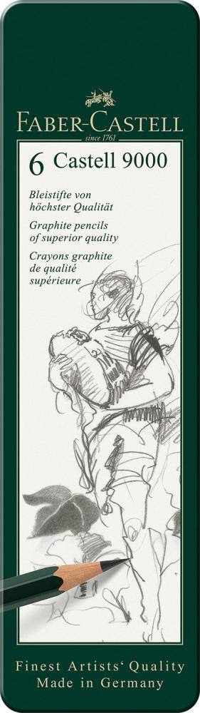 Set Faber Castell svinčnikov Castell 9000 je set šestih grafitnih svinčnikov z trdotami ( HB, B, 2B, 4B, 6B, 8B).