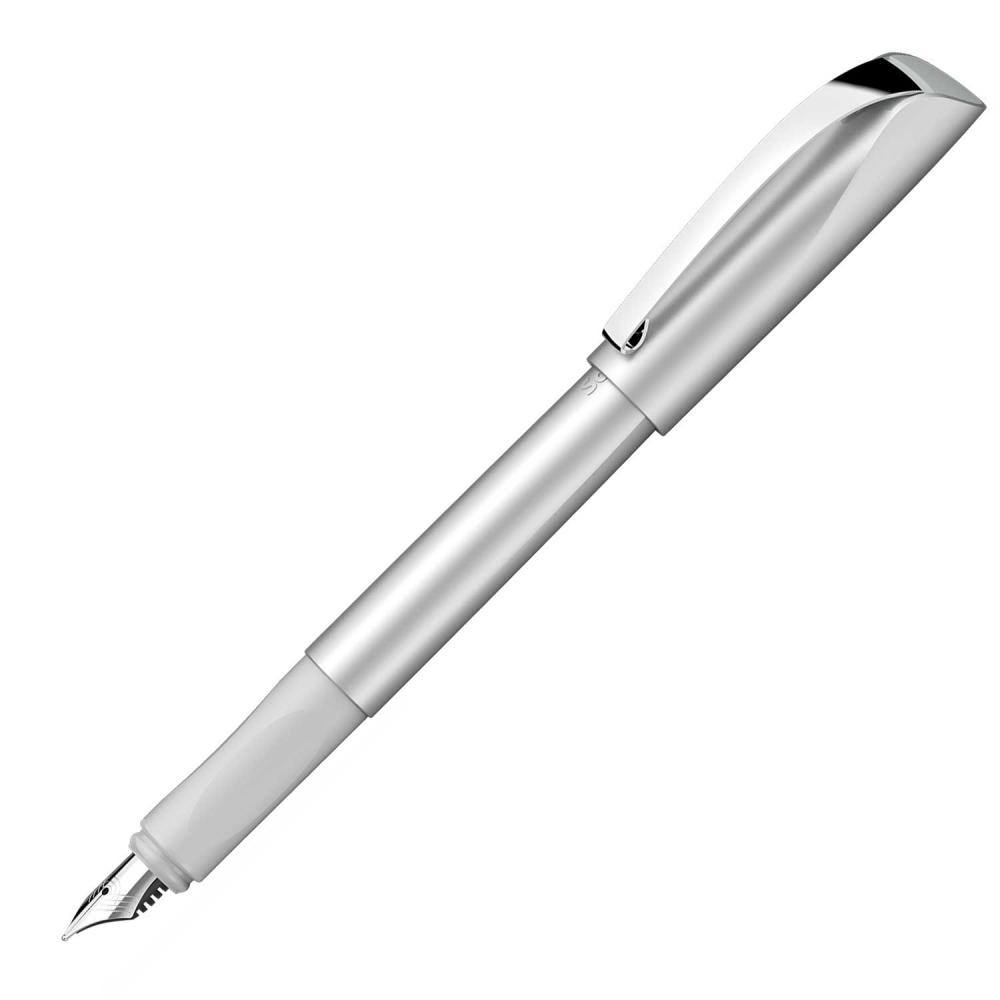 Nalivno pero Shiny v sivi barvi.#13#10- Ergonomsko gumiran oprijem.#13#10- Iridijeva konica debeline M.#13#10- Privlačen dizajn s čvrsto kovinsko sponko na pokrovčku.#13#10- Standardni črnilni vložki.#13#10- Za desničarje in levičarje.