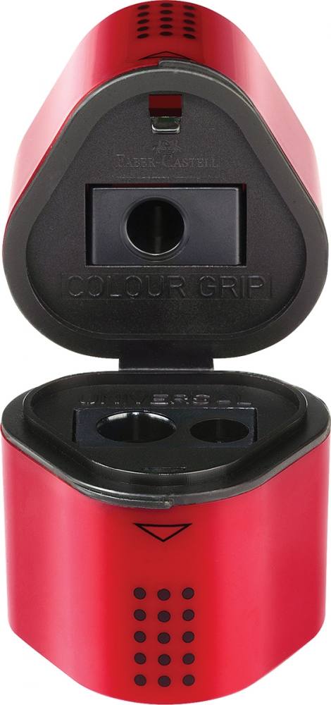Šilček Grip-moder/rdeč:-primeren za standardne in jumbo svinčnikein barvice-za vse oblike-z posodico za ošilke na obeh straneh