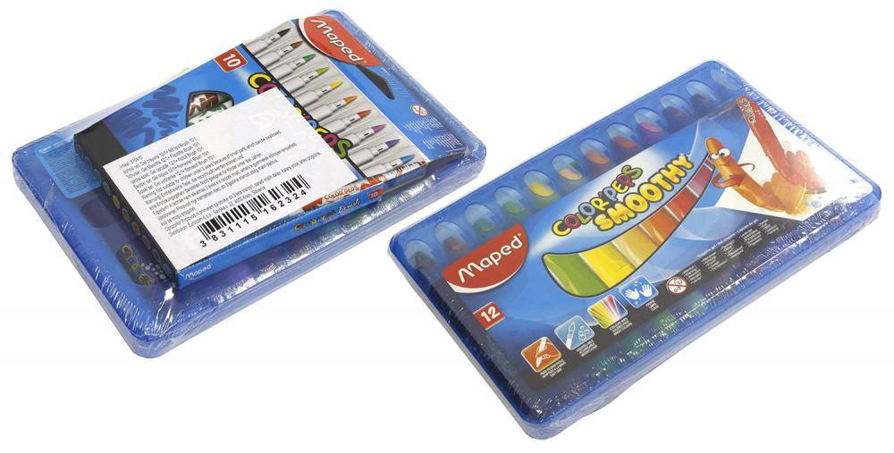 set Maped vsebuje 12 kos voščenk in 10 kos flomastrov intenzivnih odtenkov.